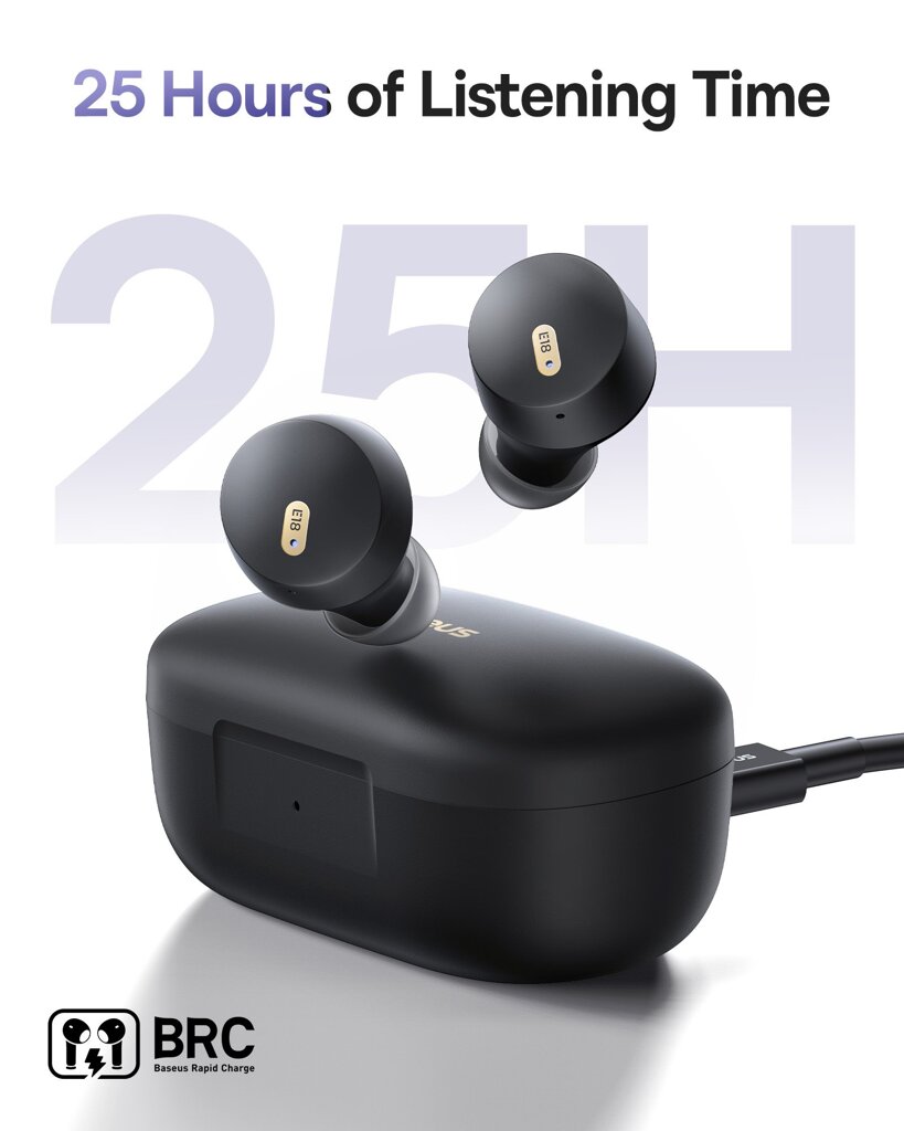 Baseus Bowie E18 Bezdrátová Sluchátka Cosmic Black Baseus Bowie E18 jsou moderní a pohodlná bezdrátová sluchátka. Díky kompaktnímu a bezdrátovému designu nabízí tato sluchátka uživatelům maximální svobodu při poslechu hudby, sledování filmů nebo telefonování. Připojení zajišťuje technologie Bluetooth 5.3, která umožňuje rychlé a stabilní připojení k mobilním zařízením, jako jsou smartphony, tablety, notebooky a další zařízení. Díky vestavěným dobíjecím bateriím vydrží sluchátka v provozu až 7,5 hodiny při nepřetržitém aktivním používání. Spolu s nabíjecím pouzdrem můžete tuto dobu prodloužit až na 25 hodin. Sluchátka podporují funkci rychlého dobíjení, která umožňuje až 2h poslech po 10 minutách nabíjení. Disponují také vodotěsností IPX4, díky které si snadno poradí s potem nebo lehčím deštěm. Inteligentní systém ENC nabízí vysoce kvalitní telefonní hovory díky výraznému snížení šumu v pozadí.