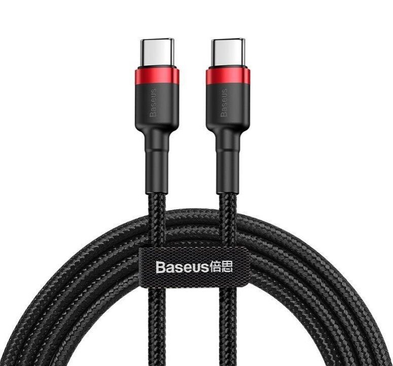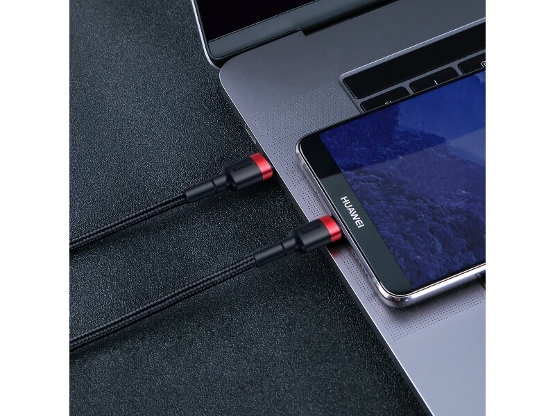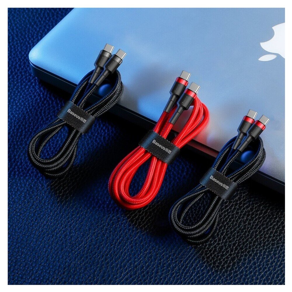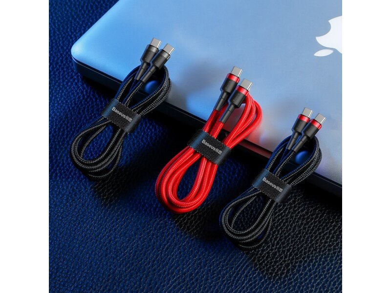 Stylový opletený nabíjecí / datový kabel Cafule Series od výrobce Baseus s konektory USB-C / USB-C (délka: 1m, červená-černá).