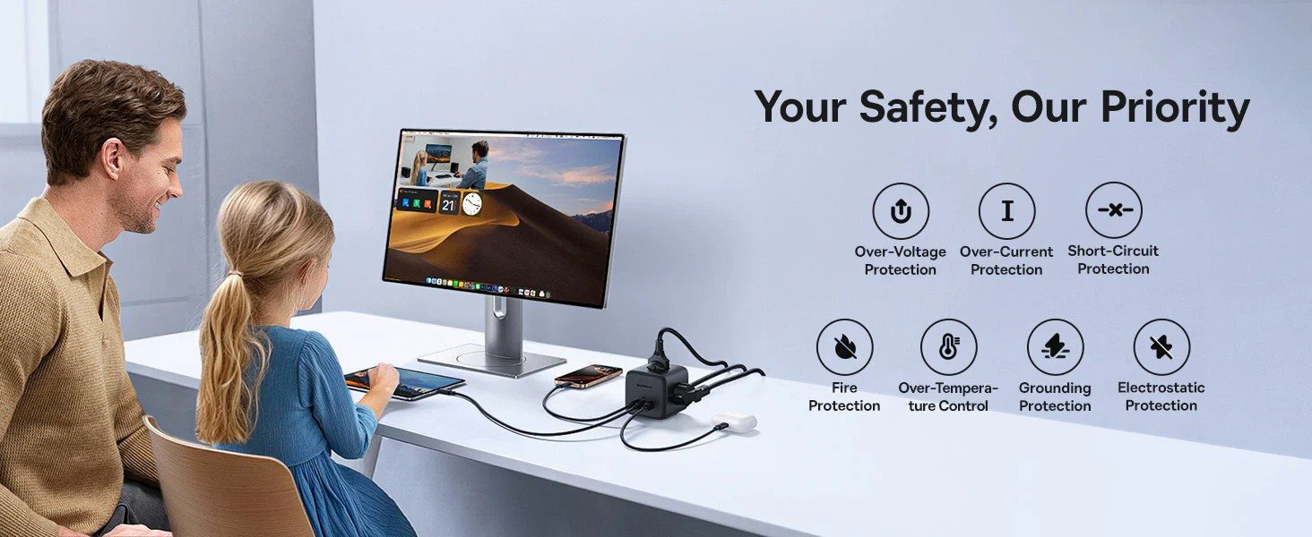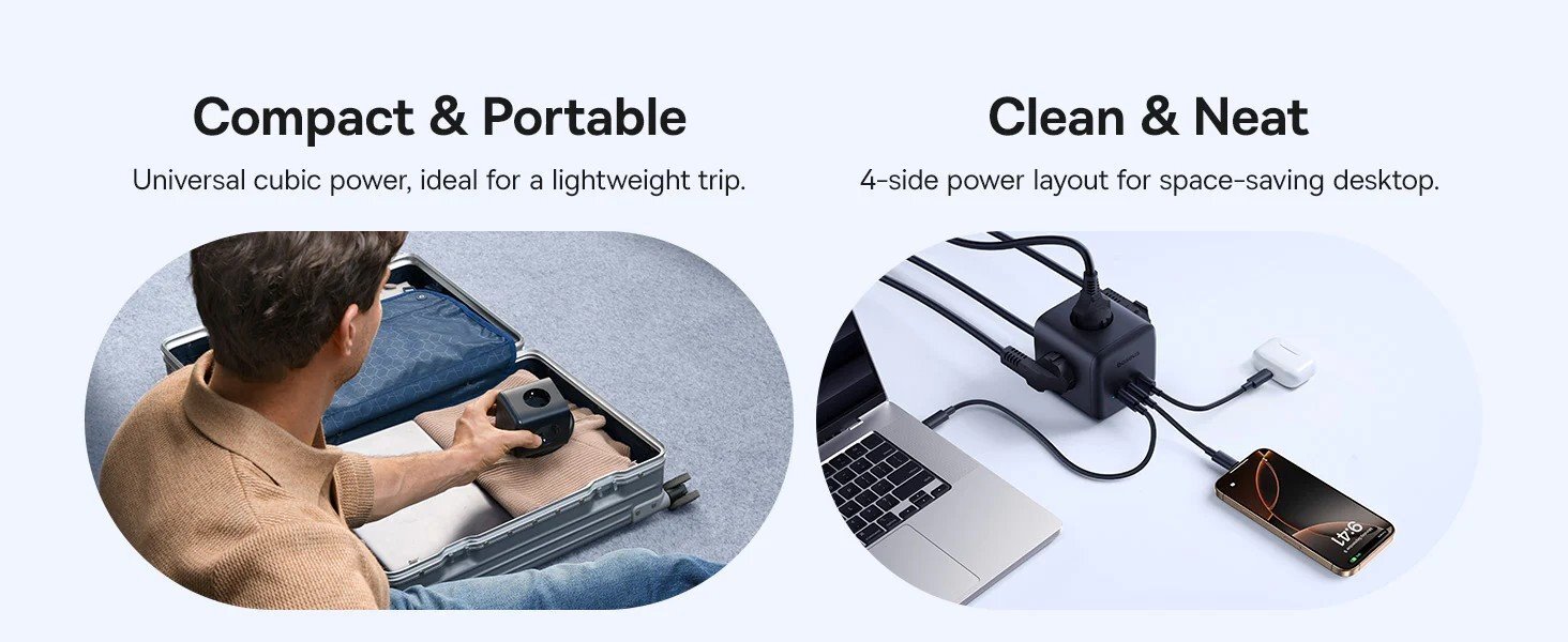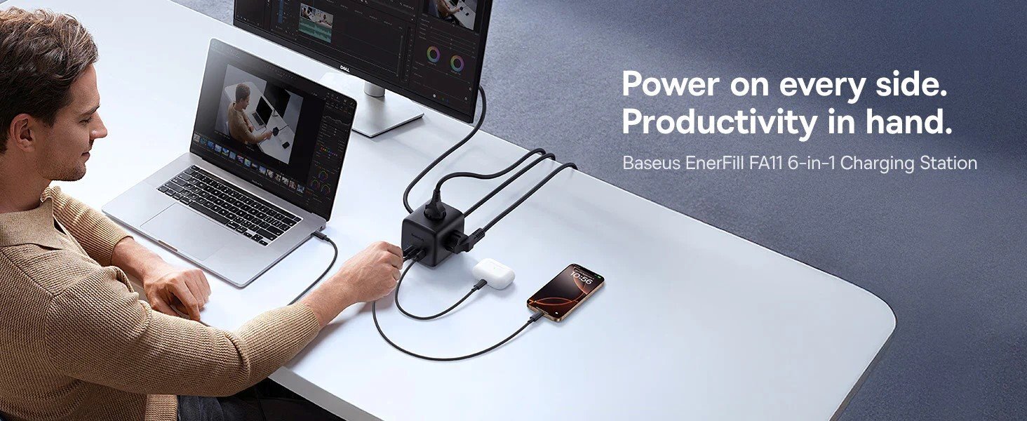 Potřebujete mít pod kontrolou nabíjení více zařízení najednou – ať už doma, v kanceláři nebo na cestách? Baseus EnerFill FA11 je kompaktní, výkonná a moderní nabíjecí stanice 6v1, která nabízí rychlé až 67W nabíjení, univerzální konektivitu a vysokou úroveň bezpečnosti. Skutečně univerzální 6v1 řešení 3× AC zásuvka pro běžné spotřebiče 2× USB-C porty 1× USB-A port Díky tomu můžete pohodlně nabíjet notebook, telefon, tablet, sluchátka i další zařízení současně z jednoho místa. Rychlé nabíjení až 67 W Technologie GaN6 zajišťuje vysokou efektivitu a kompaktní rozměry. USB-C porty podporují výkon až 67 W při samostatném použití, což je ideální pro notebooky, iPady nebo moderní telefony. Při využití více portů se výkon inteligentně rozděluje podle potřeby. Výstupní kombinace: USB-C1 nebo USB-C2 samostatně: až 67 W USB-A samostatně: až 18 W USB-C1 + USB-C2: 45 W + 20 W USB-C1 + USB-A: 45 W + 18 W USB-C2 + USB-A: max. 15 W Všechny tři porty současně: 45 W + 15 W Chytré a bezpečné řešení Baseus EnerFill nabízí řadu ochranných prvků pro maximální bezpečnost a spolehlivost: Ochrana proti přepětí Ochrana proti přetížení proudu Ochrana proti zkratu Ochrana proti přehřátí Ochrana proti přepólování Ohrana uzemnění Elektrostatická ochrana Praktický design a snadné ovládání Rozložení zásuvek na čtyřech stranách umožňuje úsporu místa a pořádek na stole Kompaktní rozměry a nízká hmotnost usnadňují přenášení a používání i na cestách Jednotlačítkový spínač pro bezpečné zapnutí a vypnutí nabíjení Přepínač automaticky vypne napájení při přetížení na AC nebo USB portech Vlastnosti: Model: Baseus EnerFill FA11 Výkon: až 67 W (USB-C) Počet portů: 3× AC, 2× USB-C, 1× USB-A Technologie: GaN6 pro vyšší účinnost a menší rozměry Rozměry: kompaktní, snadno přenosná Bezpečnostní funkce: komplexní ochrany proti přepětí, zkratu, přehřátí a dalším rizikům Ovládání: jedno tlačítko zapnutí/vypnutí s automatickým přerušením při přetížení