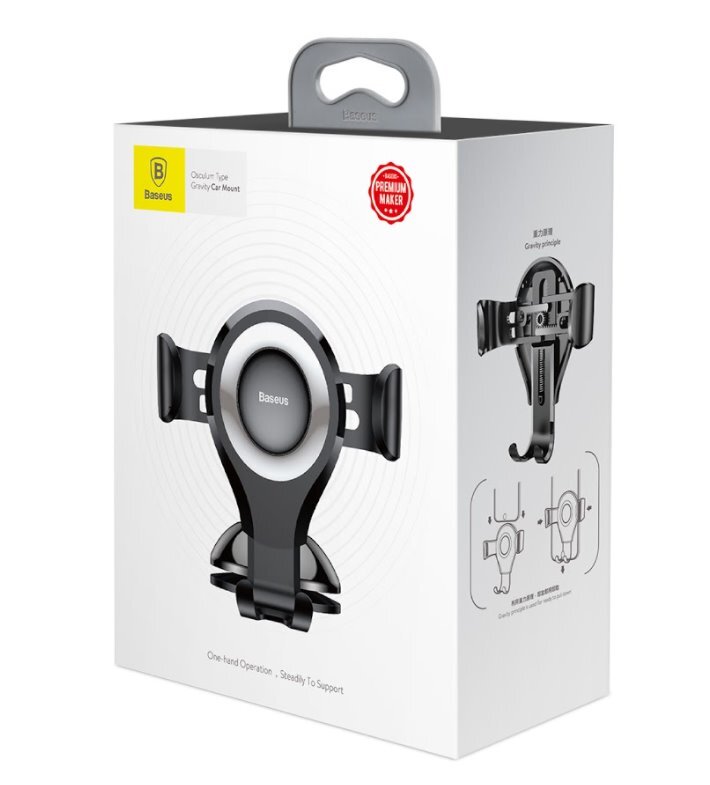 Baseus Osculum Gravity držák telefonu do auta s extra adhezivní přísavkou. Držák lze díky měkké a pružné adhezivní podložce uchytit jak na hladkém povrchu jako je sklo, ale také na palubní desce s žilkováním. Uchycení telefonu obstará gravitace, telefon se vlastní hmotností uchytí a boční držáky se pevně sepnou. Žádné složité roztahování čelistí, telefon jen položíte nebo vyjmete a to vše jen a pouze jednou rukou. Držák je vybaven také kloubem pro natočení telefonu do ideální pozice. Specifikace - Materiál PC+Silicone - Automatické uchycení telefonu vlastní vahou - Přísavka na sklo, ale i na povrchy jako je například palubní deska - Pro telefony s úhlopříčkou 4 - 6.5 palce