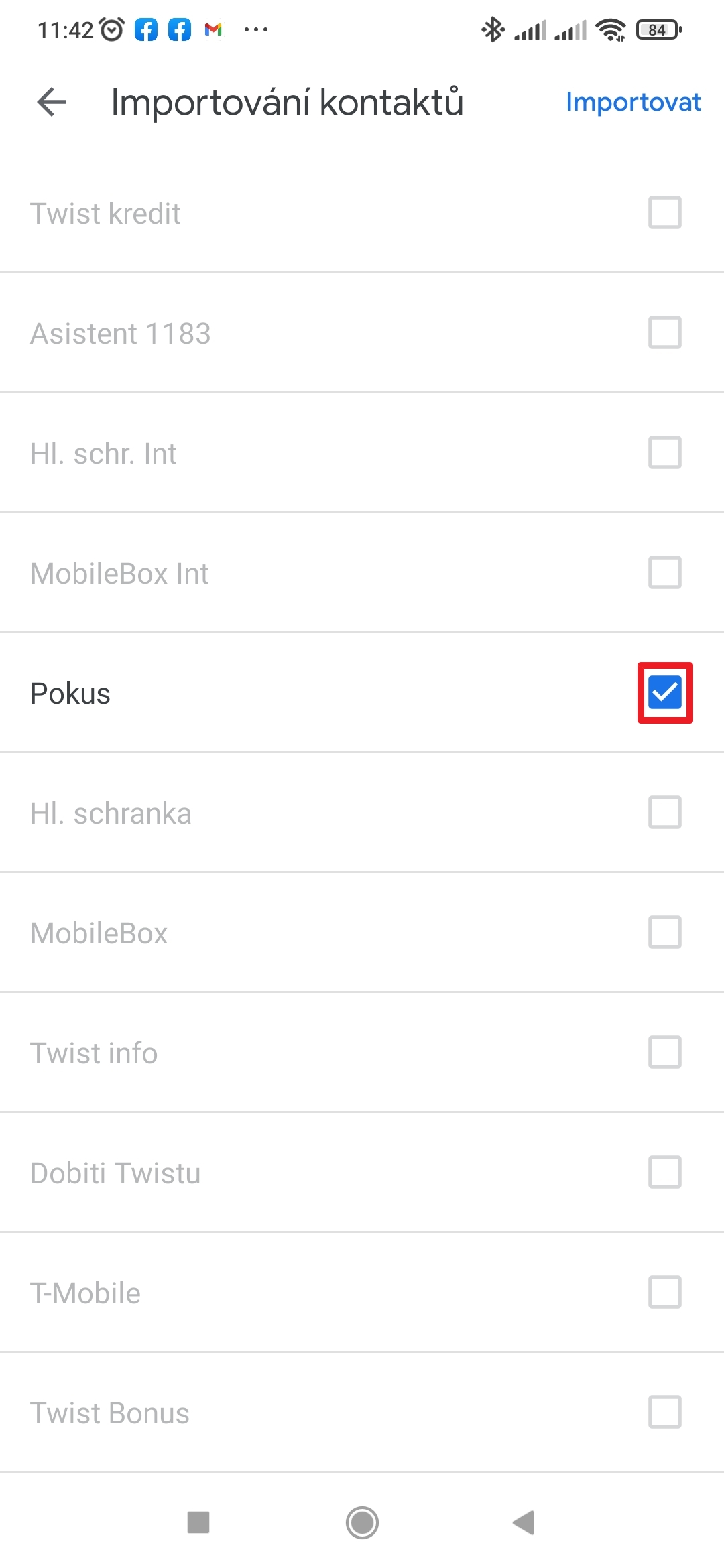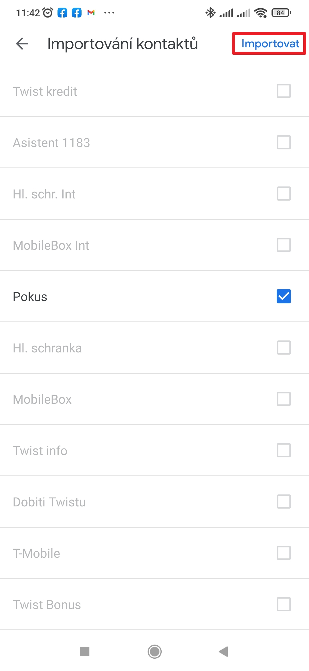 - Zvolte kontakty k importu.