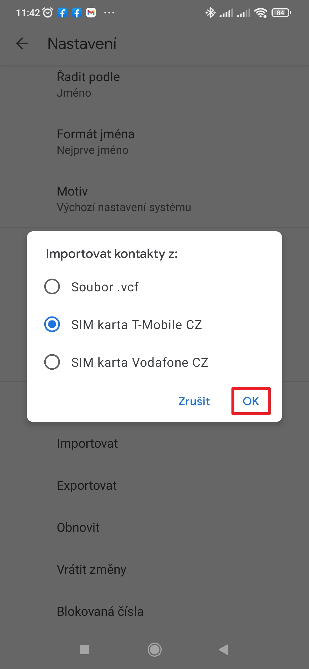 - Zvolte SIM kartu, z níž chcete importovat kontakty.