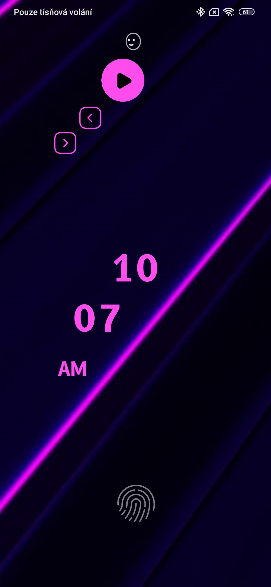 Hned na první pohled musíme konstatovat, že téma působí skutečně propracovaným dojmem. Kromě tapety s neonovým nápisem se můžete těšit na tematicky upravené ikony. I aplikace, jejichž ikony autor neupravoval, mají kolem sebe nafialovělý rámeček. Na odemykací obrazovce vás pak čekají ručičkové hodiny a zástupci pro čtyři vybrané funkce.