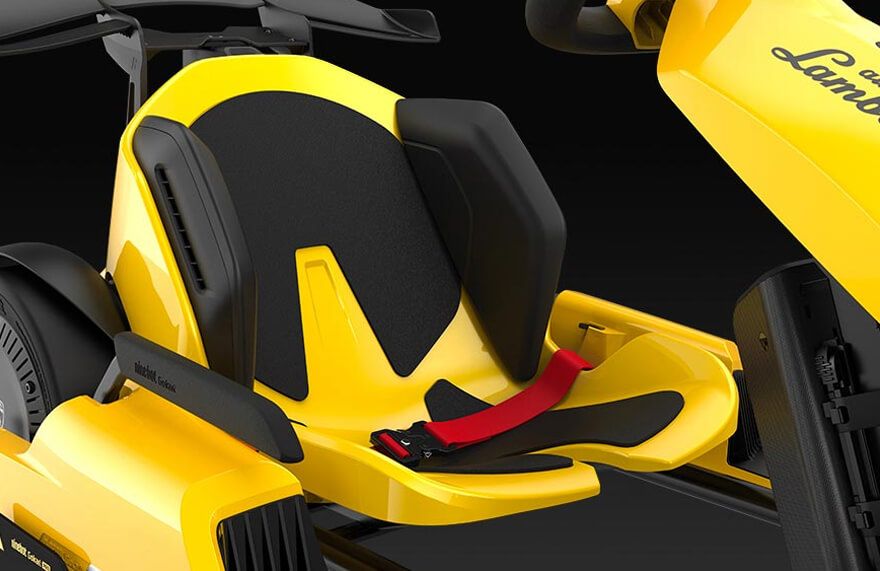 Jak naznačuje název, produkt je výsledkem spolupráce mezi čínskou firmou Ninebot (vlastní značku Segway) a italskou automobilkou Lamborghini. Motokára je tedy v ikonickém žlutém provedení a přichází v designu s prvky typickými pro sportovní vozy, jako je závodní volant či zadní spoiler. Její rozměry jsou 1040 × 852 × 459 milimetrů a hmotnost 30 kilogramů.