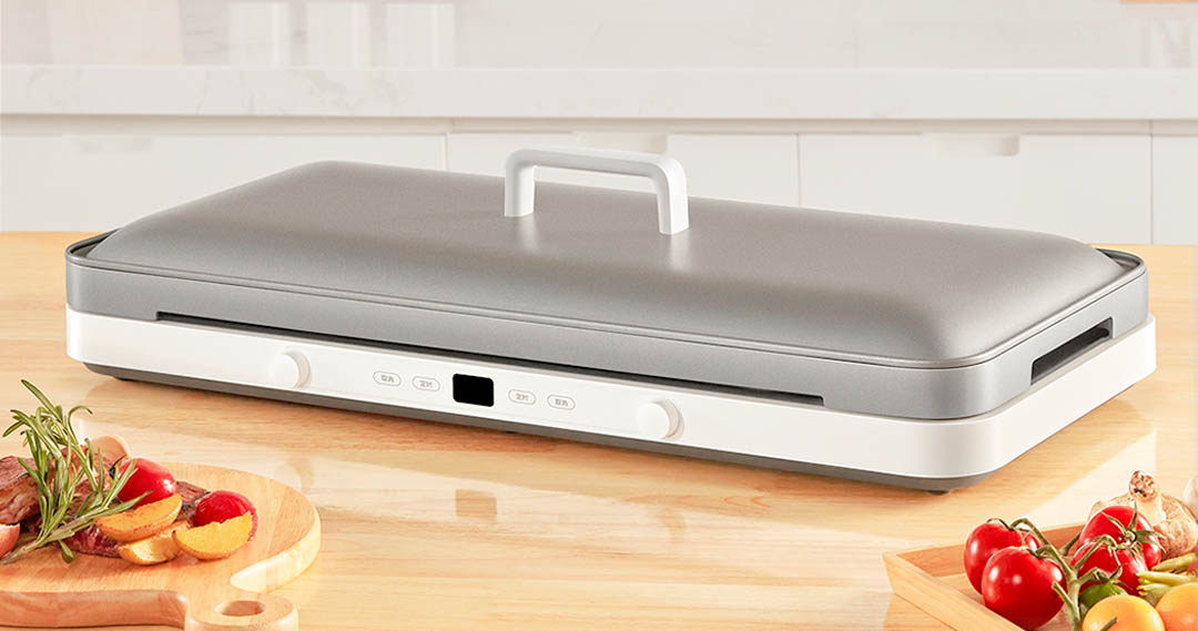 Zařízení s rozměry 632 × 313 × 100 milimetrů se vyznačuje decentním, ale moderním designem. Jeho výhodou je snadná přenositelnost a skladovatelnost, takže nemusí zabírat místo jako klasický sporák. Součástí balení je také praktický „plech“ pro přípravu pokrmů a poklice.