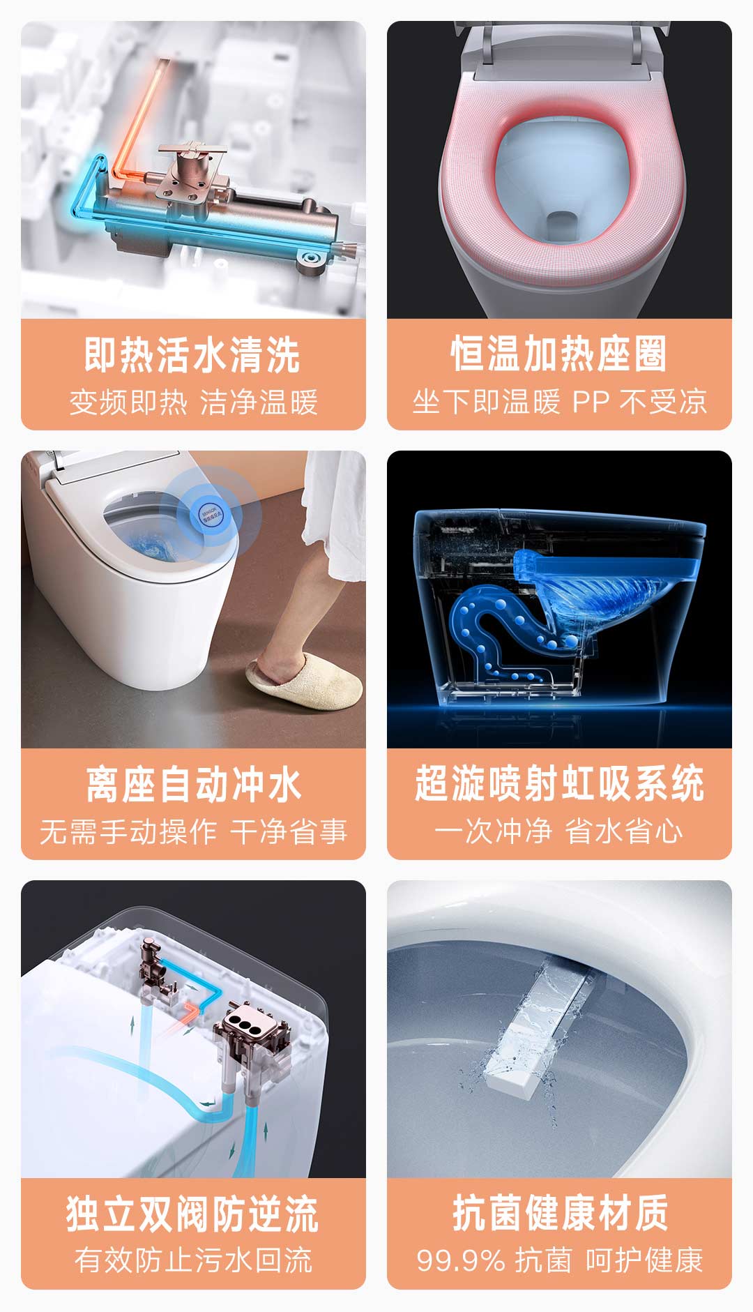 Provedení je pro tento segment víceméně standardní – mísa i prkénko mají bílou barvu, design je minimalistický, jak je u Xiaomi zvykem. Rozměry jsou 685 × 384 × 472 milimetrů, mísa je vyrobena z porcelánu, další prvky pak z akrylonitrilbutadienstyrenu (ABS).