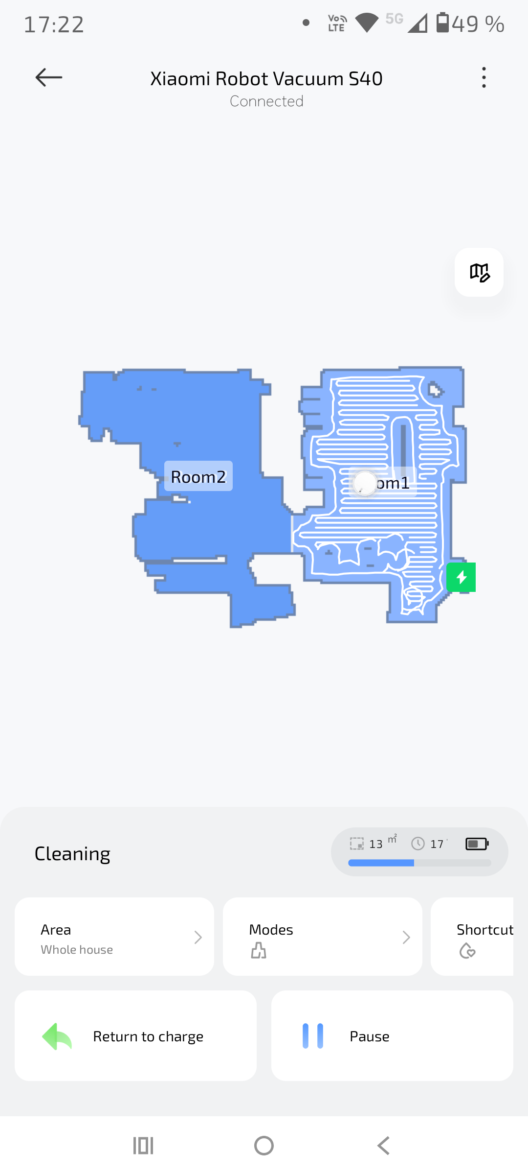 Len treba mať spoľahlivú Wi-Fi, aj na poschodie a do vzdialenosti od routera a nabitý mobil, pretože vysávač komunikuje cez mobil na router, dáta pokračujú na server a vracajú sa, vysávač časť údajov ukladá do svojej pamäti (zvyčajne 4 pevné mapy a jedna dočasná, plány, nastavenia… ). Mapu, ktorá má ostať, dajte do „back up“ vysávača (voľba v settings maps), inakšie sa vám bude stále novým zapnutím prepisovať).