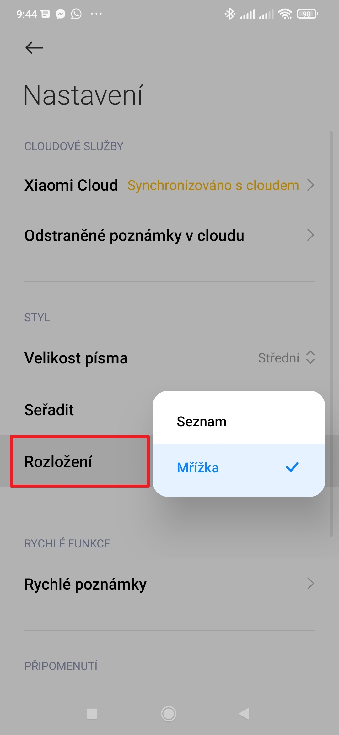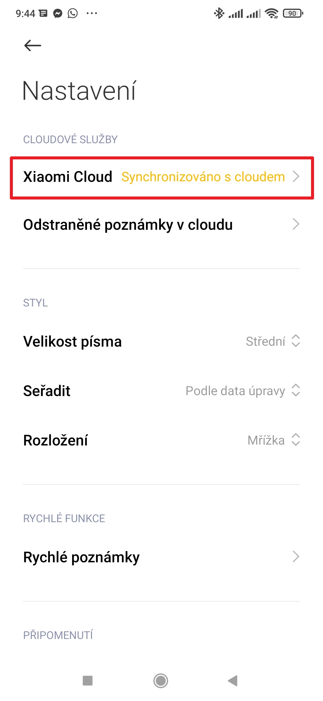 - Na stránku nastavení byla přidána položka Synchronizace s cloudem.