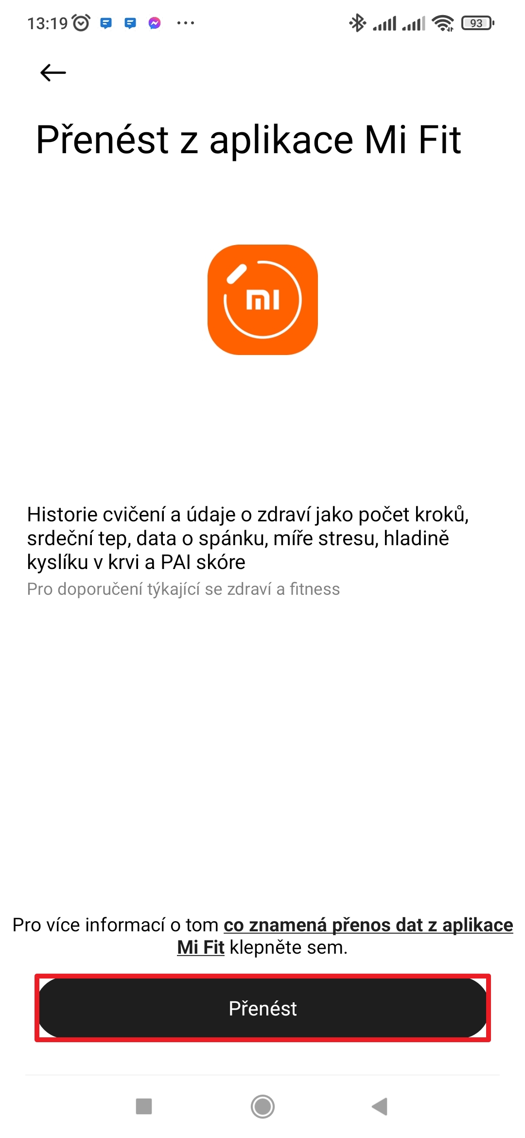 Co znamená přenos dat z aplikace Mi Fit?