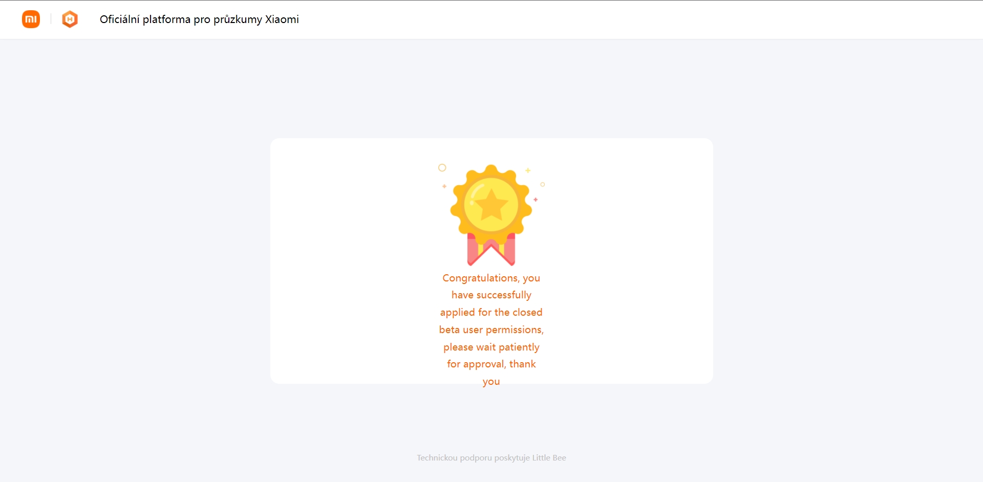 Celý proces končí obrazovkou, na které vás Xiaomi informuje, že jste úspěšně absolvovali celý proces a můžete získat přístup k uzavřenému beta testování nové verze MIUI. Zbývá dodat, že přijetí do programu Mi Pilot není automatické – Xiaomi si vybírá dle aktuálních potřeb.