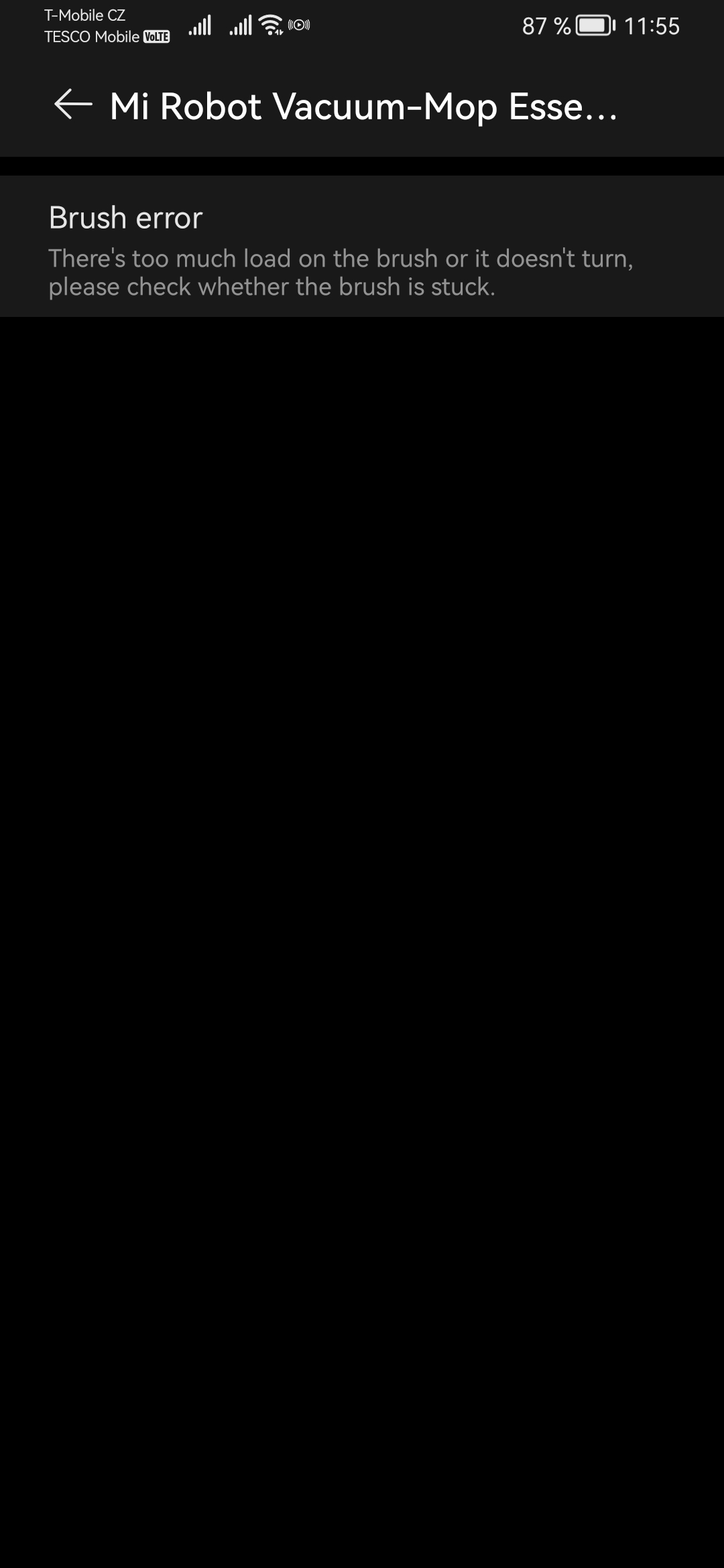 vlastním Mi Robot Vacuum-Mop Essential. Po zapnutí se robot rozjede a začne vysávat, ale po jedné minutě se rozsvítí oranžová kontrolka a ohlásí chybu.