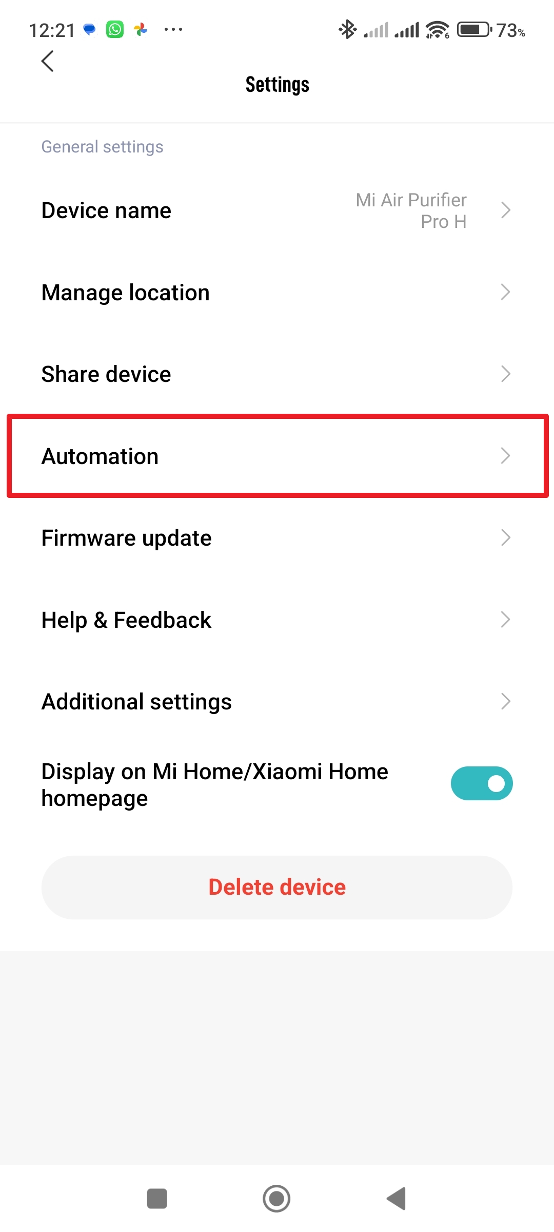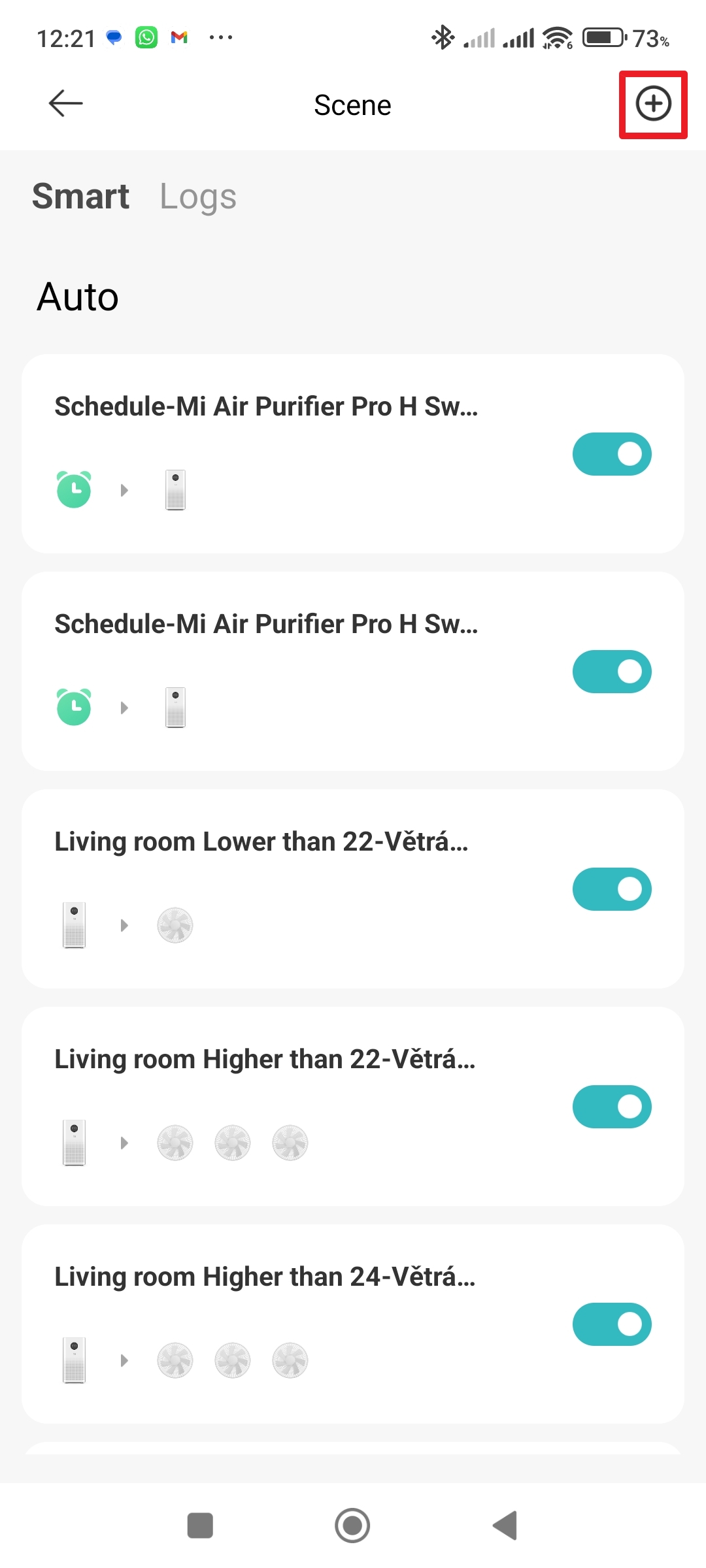 Otevřete aplikaci Mi Home Otevřete čističku vzduchu Klepněte na tři tečky Pokračujte do sekce Automation - Klepněte na tlačítko plus v pravém horním rohu.