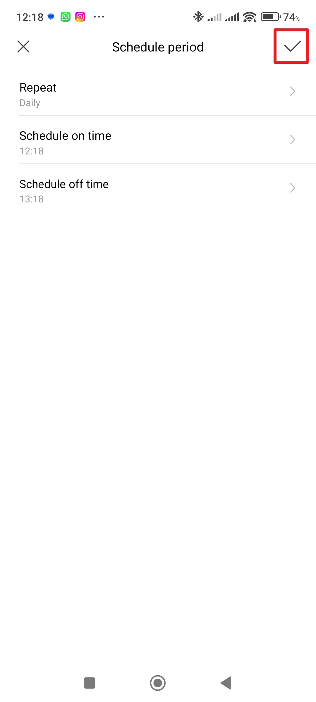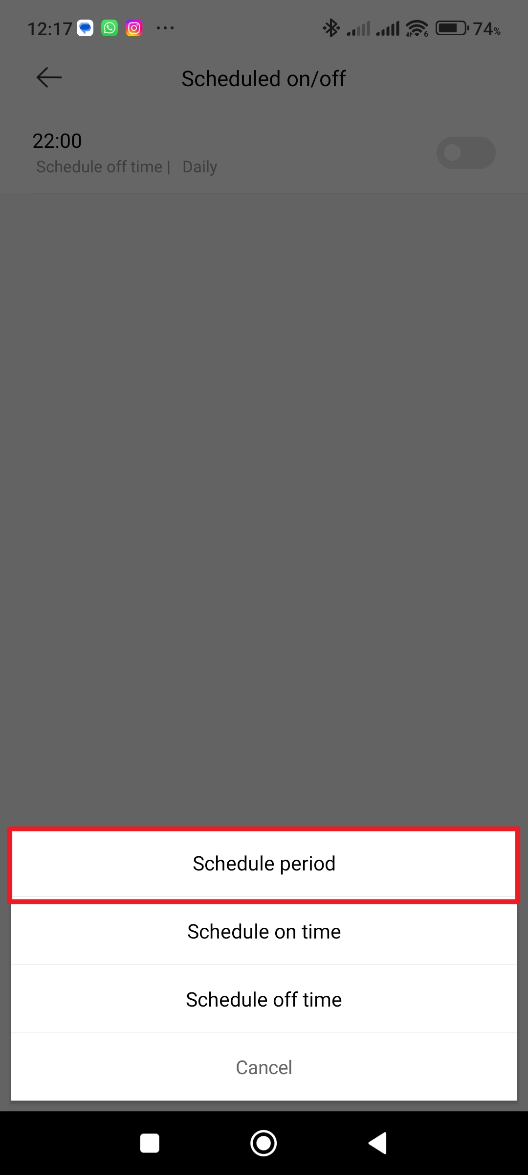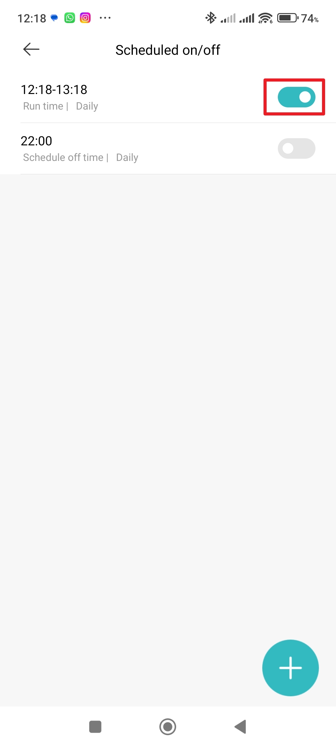 - Přejděte do sekce Scheduled on/off.