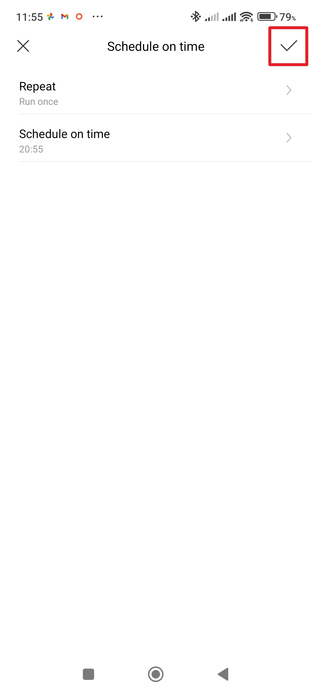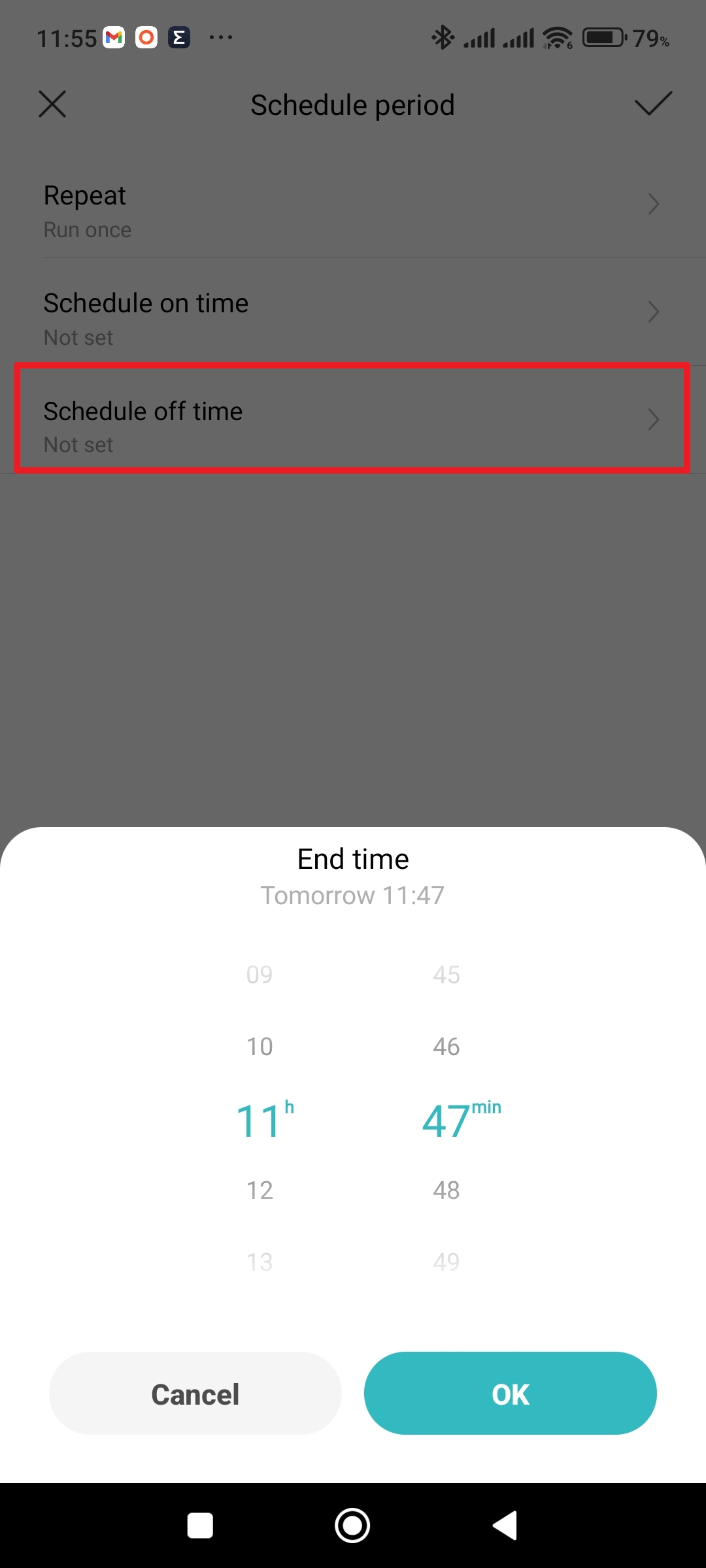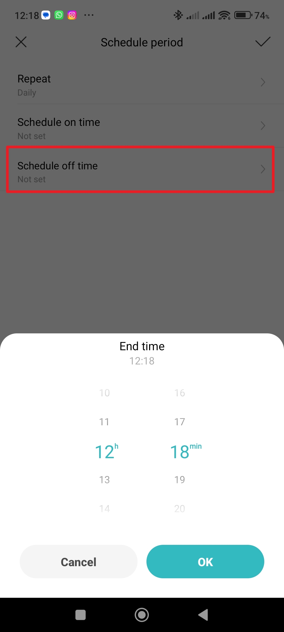 Klepněte na Repeat Zvolte, jak často se má zvolené nastavení opakovat Nastavte čas, kdy se má čistička vypnout, nebo zapnout Potvrďte nastavení tlačítkem OK - V sekci Then klepněte na Add.