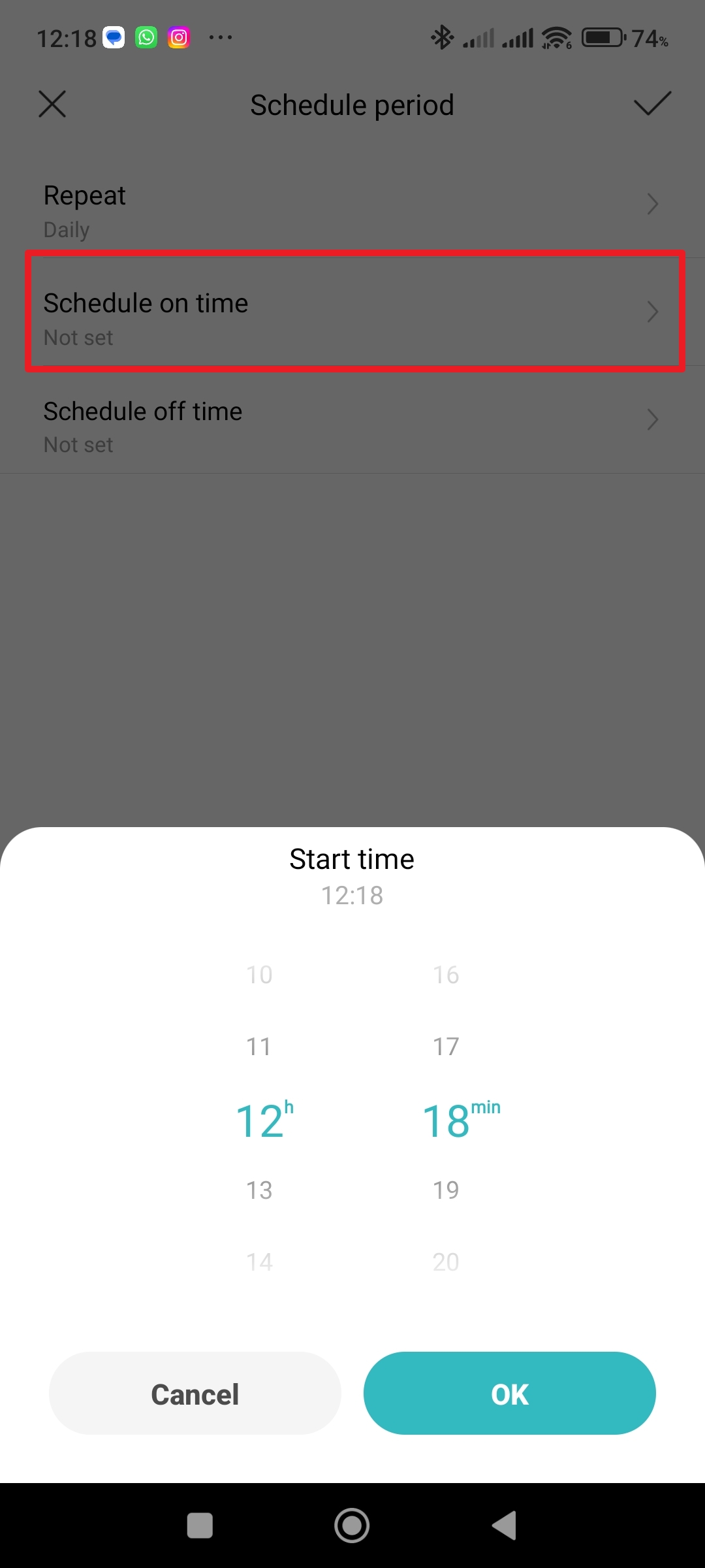 - Schedule on time – nastavení času, kdy se žárovka rozsvítí.