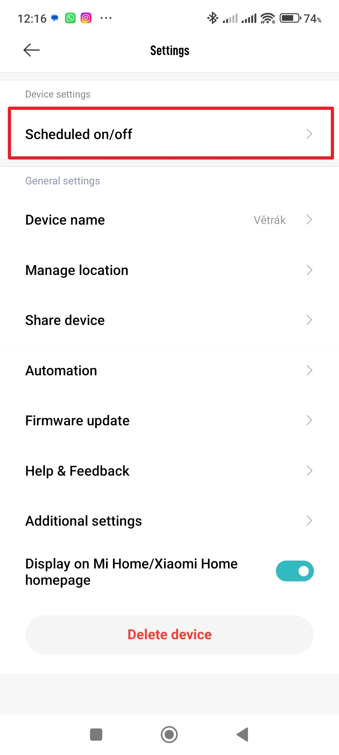 - Nastavení aplikace Xiaomi Mi Home