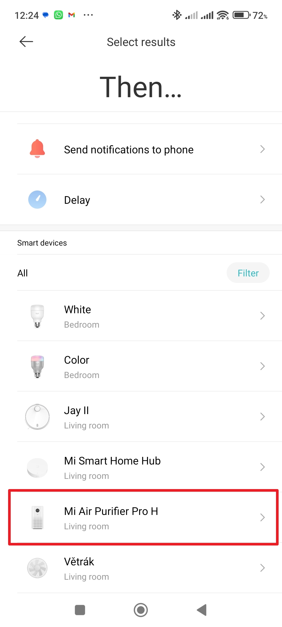 V sekci Then klepněte na Add Přejděte do sekce čističky Zvolte možnost Turn on pro zapnutí - Zvolená nastavení uložte klepnutím na tlačítko s fajfkou v pravém horním rohu.