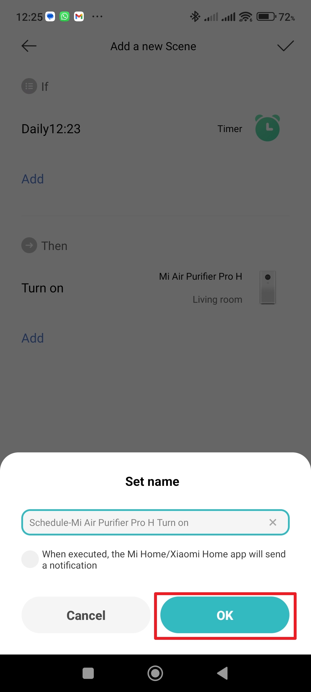 - Pojmenujte si nastavenou automatizaci a stiskněte OK.