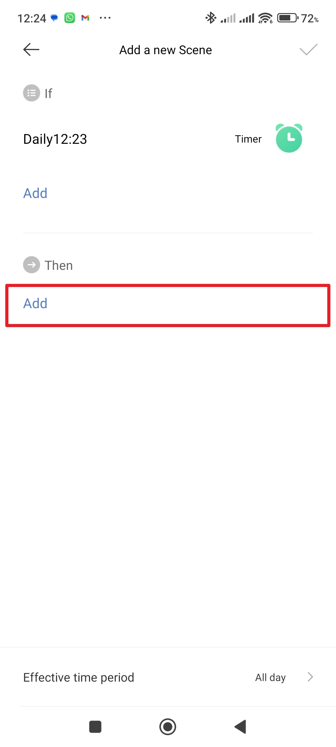 Klepněte na tlačítko plus Zvolte možnost Create a smart scene V sekci If klepněte na Add Z nabízených možnosti zvolte Schedule - Klepněte na Repeat a zvolte, jak často se má zvolené nastavení opakovat (Once znamená pouze jednou, Daily každý den v uvedeném časem a Custom ve zvolené dny).