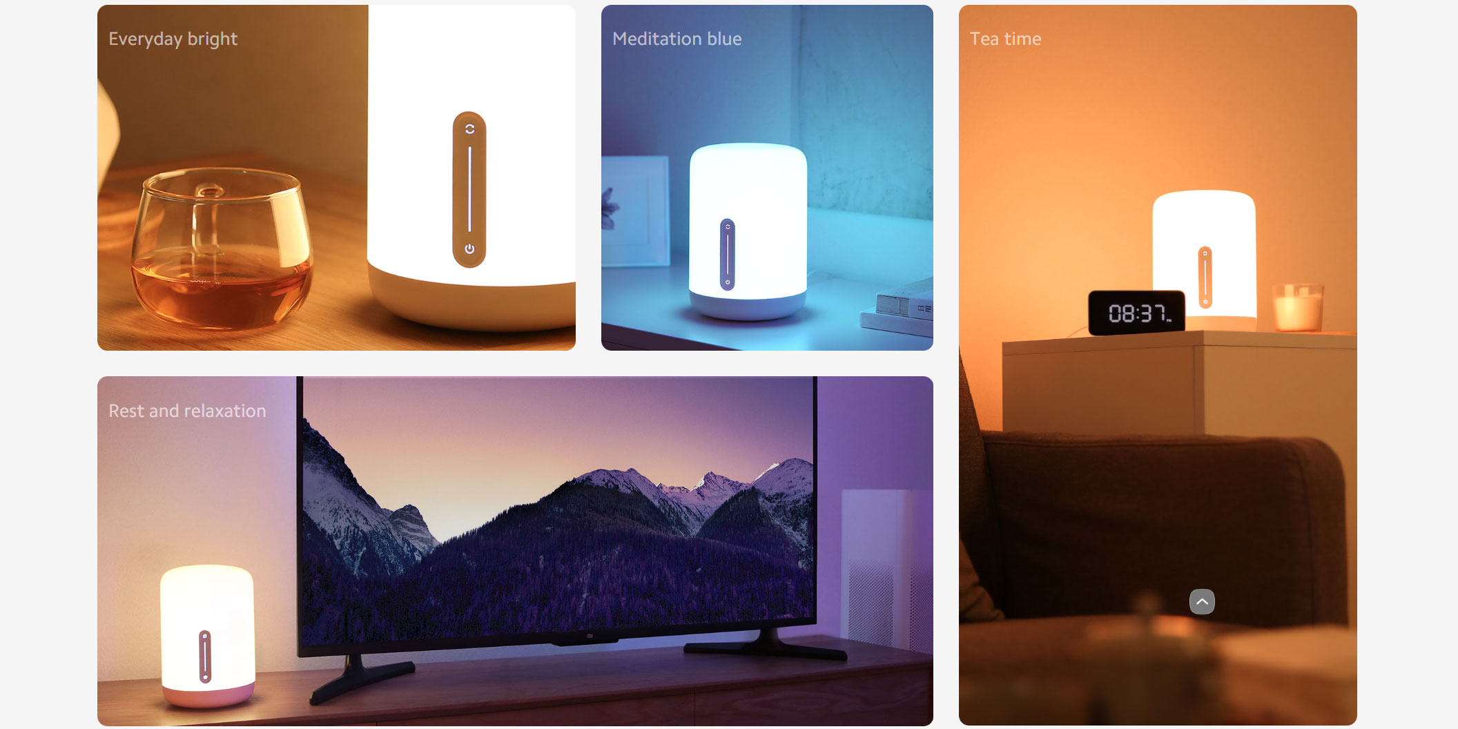 Kromě toho nabízí Mi Bedside Lamp 2 světelné režimy pro různé příležitosti. Režim Everyday bright poskytuje dostatečně jasné světlo pro běžné každodenní činnosti. Tea time vytváří uklidňující atmosféru ideální pro odpočinek u šálku čaje. Meditation blue poskytuje modré světlo, které pomáhá naladit se na meditaci a relaxaci. Režim Rest and relaxation podporuje odpočinek a relaxaci, díky čemuž je perfektní pro chvíle klidu a regenerace.
