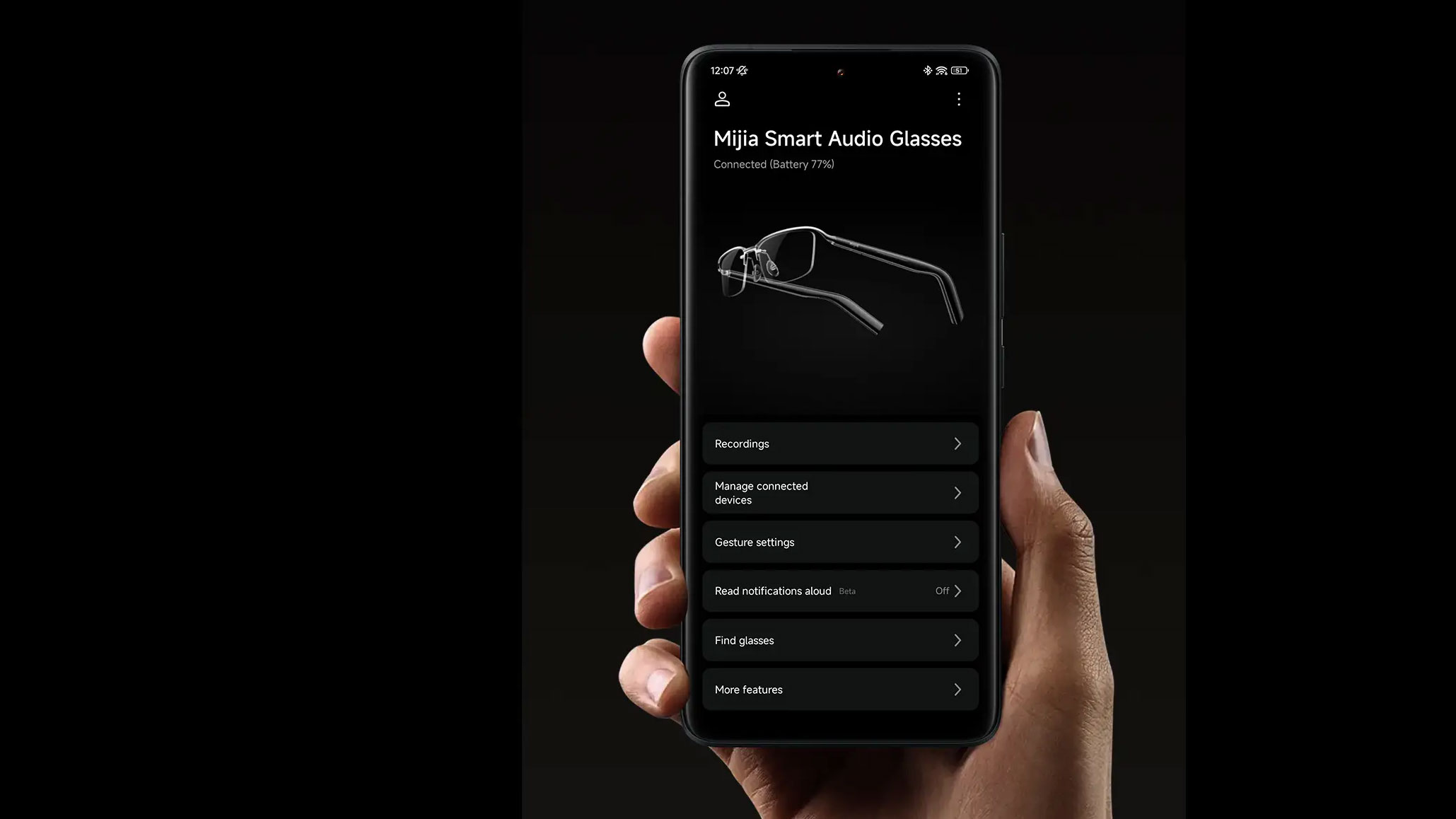Spolehlivé bezdrátové propojení zajišťuje moderní technologie Bluetooth 5.4 s podporou funkce Dual connection. Reálně to znamená, že brýle mohou být současně připojeny ke dvěma zařízením, například k telefonu a notebooku, a plynule mezi nimi přepínat. V aplikaci Xiaomi Glasses naleznete i praktickou funkci pro vyhledání brýlí, pokud je doma někam založíte a nemůžete je najít.