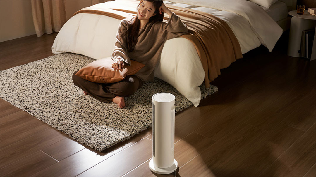 Designéři mysleli i na vzhled a praktičnost. Ohřívač má výšku optimalizovanou tak, aby efektivně vytápěl prostor od hlavy až k nohám. Díky širokoúhlému rozptylu tepla v úhlu 70° a funkci oscilace dokáže rovnoměrně vytopit celou místnost. Přitom zabírá minimální prostor – jeho základna je menší než běžný tablet.