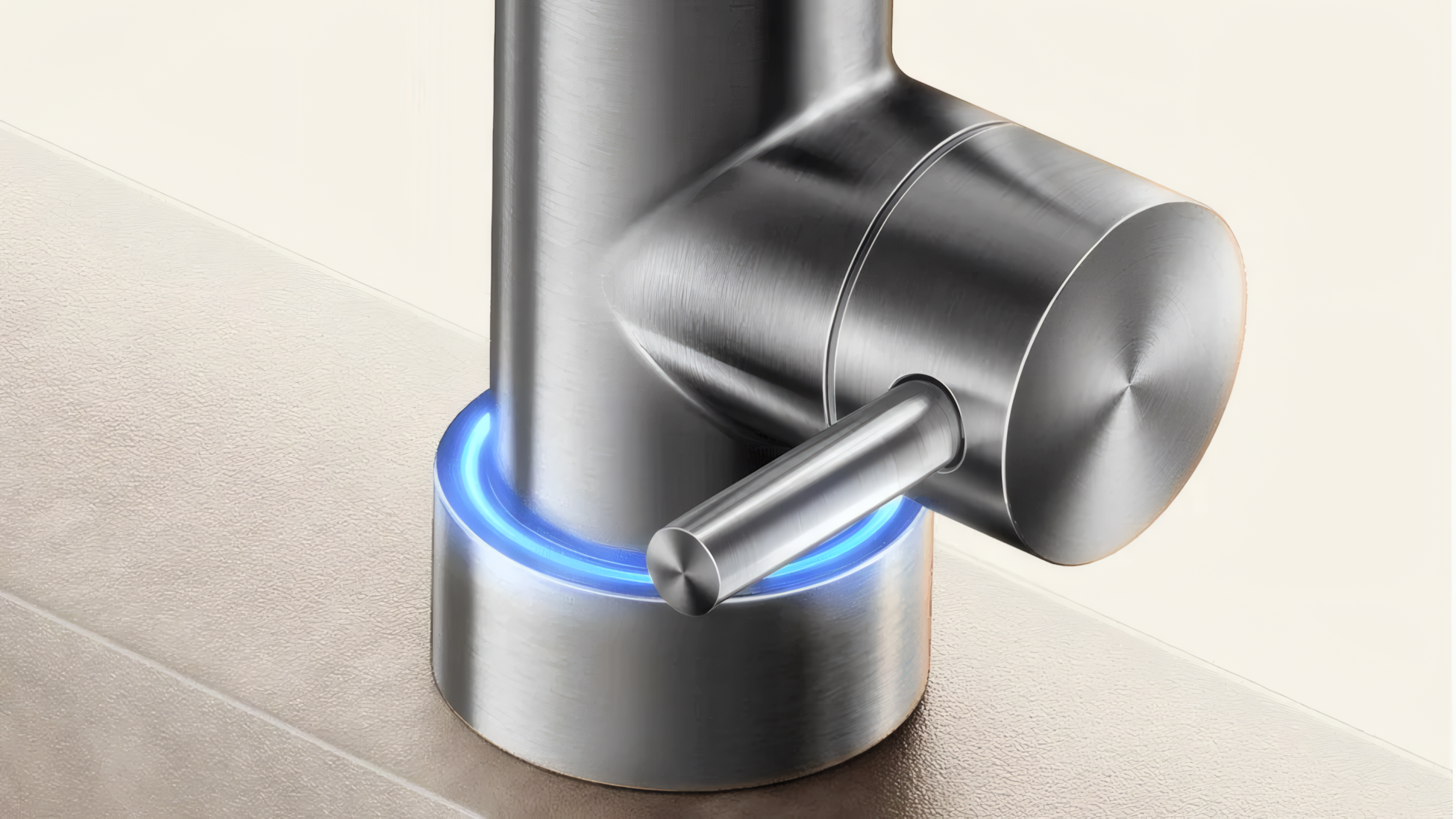 Součástí balení je také chytrý kohoutek, který je vybaven praktickým světelným indikátorem. Ten pomocí barev na první pohled informuje o stavu filtrů. Zatímco modré světlo signalizuje normální provoz, oranžové blikání upozorní na blížící se konec životnosti filtru. Jakmile se světlo změní na trvale oranžové, je čas filtr co nejdříve vyměnit.