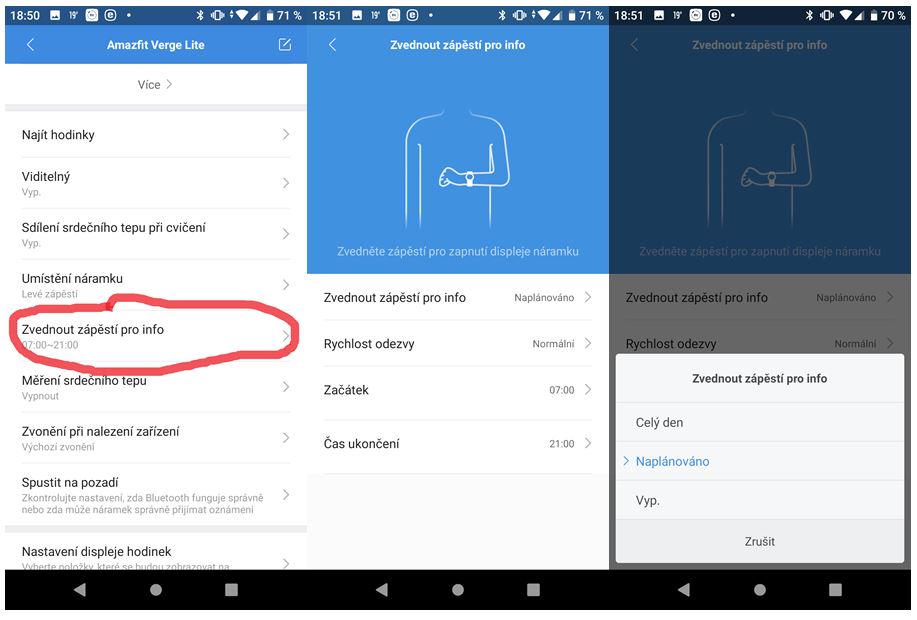 Také mám zmíněné hodinky a displej se aktivuje jak tlačítkem, tak i otočením ruky. Nastavuje (povoluje) se to v nastavení hodinek v Mi Fitu nebo Amazfitu.