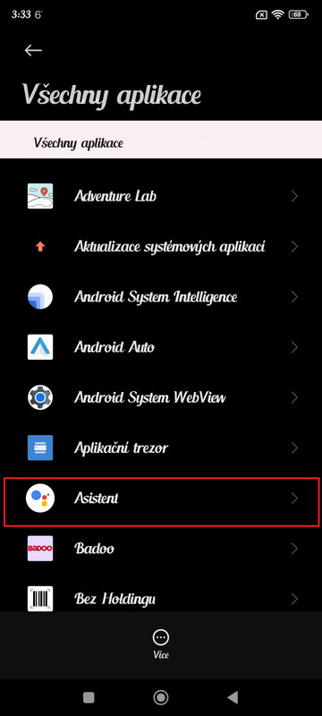 Hned první aplikací ,které byste se rád zbavil, jak píšete, je ten Asistent (Google Asistent) . Rozkliknete a dáte Deaktivovat. Přitom vám vyskočí „bla bla“ hláška , že deaktivace této aplikace vám naruší správný chod telefonu.