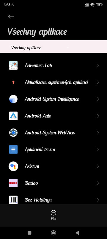 Otevře se vám seznam aplikací seřazených pod sebou A-Z