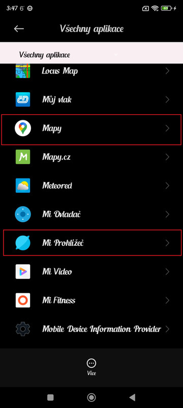 Dále pokud v telefonu nestojíte o aplikaci map od Google (Mapy), tak i ty jdou deaktivovat, zakázat. Nyní trochu sběhnu k MIUI aplikacím. Bude řeč o appce „Mi Prohlížeč“ . Někomu tato aplikace nedá spát, zjistí, že je hrozná a bude se snažit ji vypudit z telefonu. Některé verze MIUI dovolí tento internetový prohlížeč klasickou, běžnou cestou odinstalovat. Některé verze MIUI dovolí prohlížeč odinstalovat až přes tuto „fialovou aplikaci“ a některé verze MIUI nedovolí přes „fialovou aplikaci“ Mi Prohlížeč ani deaktivovat, zakázat. To už musíte sám vyzkoušet.