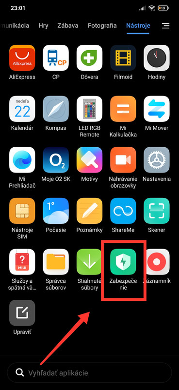 - Otevřete položku Optimalizace (na telefonech ve slovenštině Zabezpečenie).