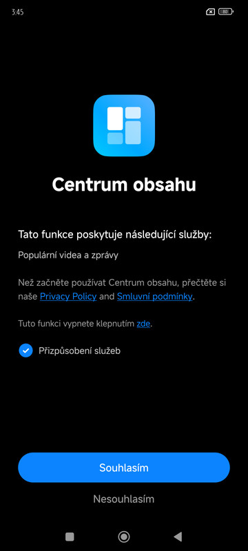 mnohokrát Vám oběma děkuji za rychlé reakce a pomoc. Moc si toho vážím. Ale abych to vše dovysvětlila – svůj Xiaomi Redmi Note 12 Pro 5G jsem si zakoupila před 8 měsíci, jenomže mi cca před měsícem přestalo fungovat tlačítko power, nešla tedy čtečka otisku prstů a celkově systém padal. Mobil jsem odeslala na reklamaci a včera mi přišel. Nabila jsem jej a začala s nastavováním. Po nastavení přišla aktualizace, nyní mám tedy verzi OS 1.0.1.0.UMOEUXM. Snad to bude šlapat v pohodě. Centrum obsahu jsem dle přiloženého návodu vypla, netušila jsem, že je to tak jednoduché, ještě jednou díky. 🙂