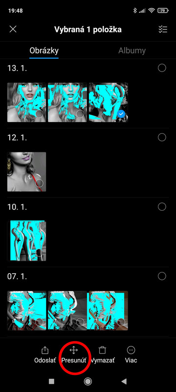 Dobrý večer, máte niekoľko možností; ja to robím prostredníctvom počítača. Ak túto možnosť nemáte, ide to napríklad cez správcu súborov: Označte súbory, ktoré chcete presunúť, dole sa Vám ukáže ikona presunúť: