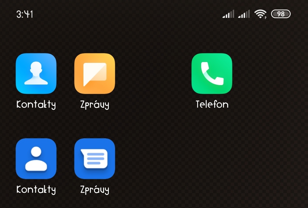 Proslýchá se ,že výrobce u mobilů Xiaomi řady 8 vyměnil původní Xiaomi systémové app Kontakty a Zprávy za aplikace od Google, „Z jaké dílny“ máte vy aplikaci Kontaktů a Zpráv poznáte z tohoto screenshotu. Ikony v prvém řádku patří aplikacím od Xiaomi. V druhém řádku jsou ikony app od Google.