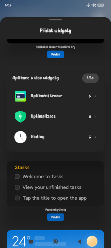 HyperOS > POCO F5 Pro > chybí klasické widgety jako v MIUI > třeba hodi.
