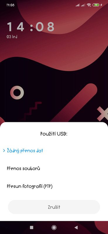 -odemkněte mobil a kabelem k telefonu propojte mobil s PC. Na displeji mobilu se vám ukáže tato bublina (viz přiložený screenshot)