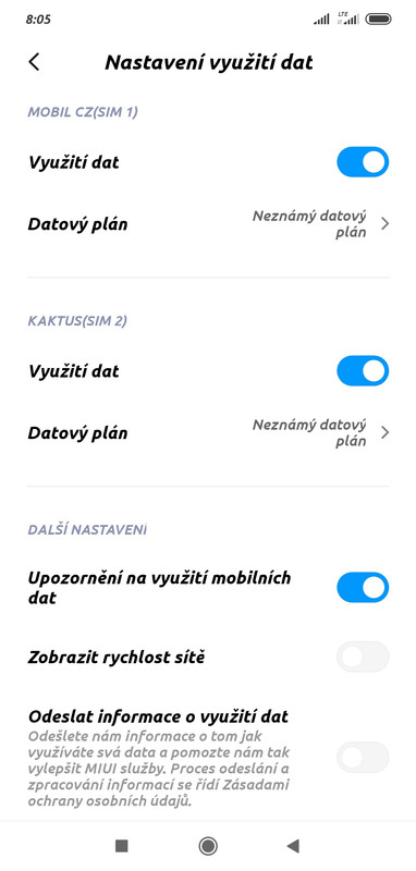 Já mám jiný problém, nastavím si limit s obnovením balíčku 16 v měsíci, a stejně se vyresetuje na nastavenej limit 40GB už 1 den, mazal jsem data aplikace optimalizace, i tovární nastavení, pořád stejný problém. A dokonce jsem to testoval na třech Xiaomi mi9 na MIUI 12/12.5 a teď nově na Xiaomi 12 Pro na MIUI 13 a stejnej problém 🙈