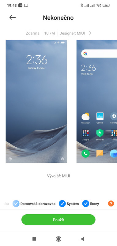 Můj poznatek je tedy ten, že u mého RN7 jedno z defatních témat a to „Klasické“ ctí novou grafiku ikon appek od Google a druhé defautní téma „nekonečno“ nový styl ikon od Google nectí a použíje jejich původni styl.