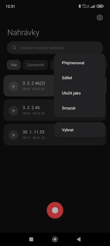 ✅ Nahrávky vytvořené Záznamníkem zůstávají v telefonu, ale nejsou standardně viditelné ve Správci souborů. K jejich přesunu do jiných složek je potřeba využít funkci „Uložit jako“ v aplikaci Záznamník.