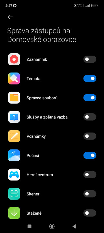 V Nastavení telefonu > Aplikace > Správa zástupců na Domovské obrazovce > je seznam aplikací s přepínači. Zde je svobodná volba na vás, kterou aplikaci chcete na Domovské obrazovce mít (zmodralí přepínač) a nebo nemít, aby vám tam nezavazela. (zešedlý přepínač). V tomto seznamu se nachází i aplikace vámi zmiňovaného Záznamníku.