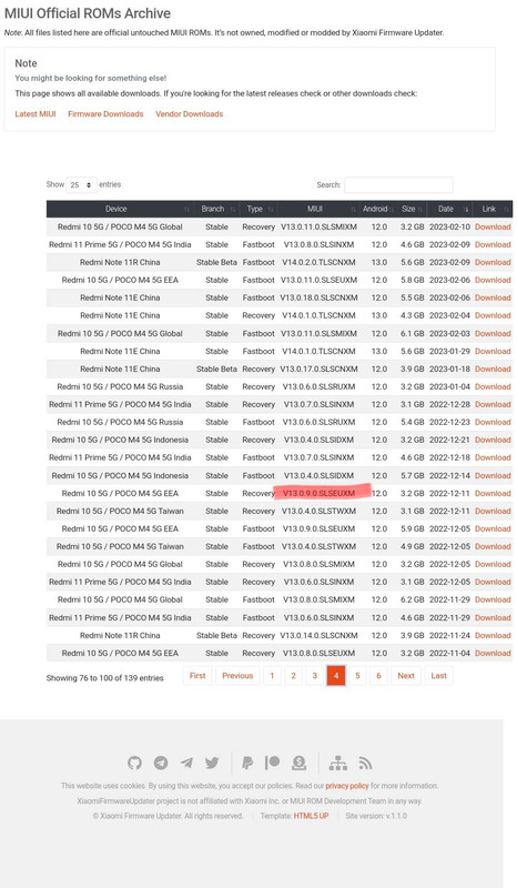 Ze stránky xiaomifirmwareupdater jsem stahoval všechny ROM, jsou tam i např. právě MIUI V13.0.9.0.(SLSEUXM).