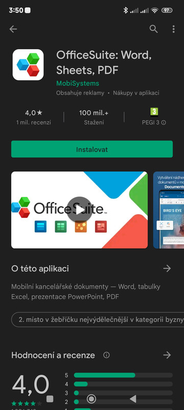 V telefonu je předinatalována aplikace, která by měla umět otevřít kdejaký „kancelařský“ soubor PDF, Word atd. Ta „univerzální“ aplikace umí vše a neumí nic. Myslím, že to tato