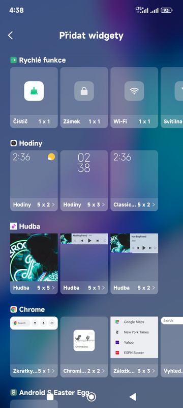 …… a v nabídce Widgetů taky nic moc posun dopředu. Snad jen se rozšířily možné velikosti widgetů.