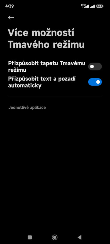 Objevil jsem i chybu, nebo dělám něco špatně. V Nastavení > Displej > Aktivován Tmavý režim > Více možností tmavého režimu > a zde po táhnutí displeje od spodního okraje k hornímu se objevily v položce „Jednotlivé aplikace“ (šedě) seznam aplikací pod sebou s přepínači, kde se dal jednotlivým aplikacím deaktivovat prostředí Tmavého režimu. Nyní ať táhnu displej jak táhnu aplikace s přepínači se neukazují.