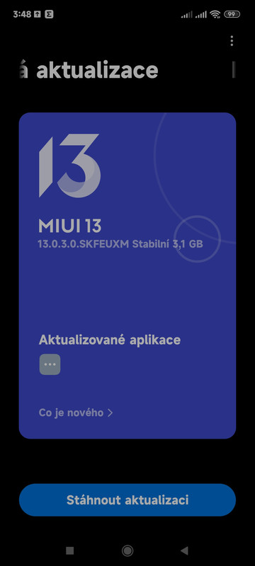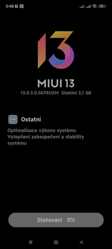 Dnes ráno 10.2.2022 se mi na mém RN10Pro EEA vyskočila přes OTA aktualizace na MIUI13/A12 (SKFEUXM) V 13.0.3.0 Stabilní ROM. První změny oproti MIUI12.5, kterých jsem si všiml: Změna předinstalovaného systémového tématu \“Klasicky\“. Už neni to oranžové. Téma \“Nekonečno\“ zůstalo bezezměny. U předinstalovaných tapet přibyla sada nových. Ve \“Speciální funkce\“ je nová položka \“Postranní lišta\“. ……. a poslední postřeh. Po aktualizaci mobil pomalu reaguje, s prodlevou. Ale to zřejmě spraví přehrátí SW typem Recovery ROM, pak následný tovární reset a poté čistá instalace \“Nastavit jako nové zařízení\“.