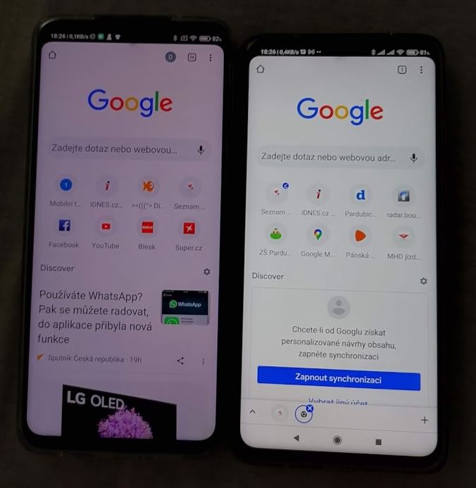 z mého pohledu má tedy lepší obraz ten telefon vpravo, tj. ten starší. Redmi Note 9 Pro jsem recenzoval a s obrazovkou jsem neměl problém – připadala mi průměrná, odpovídající ceně telefonu. Nedokážu bohužel z fotky posoudit, zda je obrazovka Vašeho telefonu nějakým způsobem vadná nebo špatná, čili bohužel těžko poradím, zda je tohle na reklamaci.