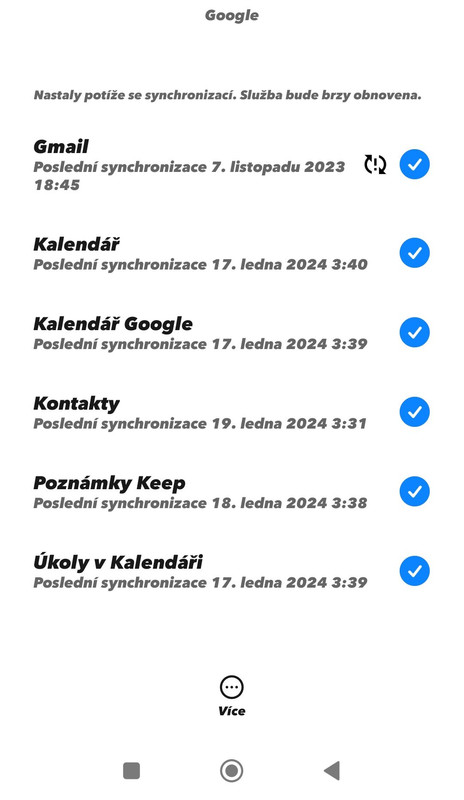 Zde je screenshot, které věci jdou automaticky v telefonu synchronizovat na google účet.