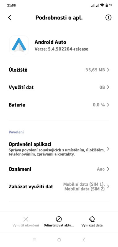 Já ve svém RN7 Global Stabilní ROM, s Androidem 10 a MIUI 12.0.1.0. mám v Nastavení (telefonu) > Aplikace > Správa aplikací > kliknout na tři tečky pod sebou v pravém horním rohu displeje > Zobrazit všechny aplikace > v seznamu aplikací pod sebou vidím, že můj RN7 má nainstalovanou aplikaci „Android Auto“, ale nikde na ploše, displeji nemám ikonu této aplikace (modré stříšky), takže mi nejde nijak spustit, otevřít. Dokonce v obchodě Google Play vidím, že můj RN7 má app Android auto nainstalovanou a chodí mi pro ni aktualizace. O této aplikaci jsem už v tomto vlákně psal. Abych mohl app Android Auto spouštět z plochy, kliknutím na její ikonu, tak musím někde z netu stáhnout apk instalační soubor této aplikace Android Auto, a tu co mám v telefonu (ale nemá ikonu na ploše) musím tou staženou z netu přeinstalovat. Pak se mi na ploše vytvoří teprve ikona app Android Auto a app mohu spustit. Bohužel s každým továrním Resetem telefonu z plochy ikona app Android auto zase zmizí, byť samotná alikace v seznamu předinstalovaných aplikaci v telefonu je. Zda app Android Auto ale v RN7 korektně funguje vám bohužel nesdělím, neb ve svých 55ti nemám auto, ani doteď žádné neměl.