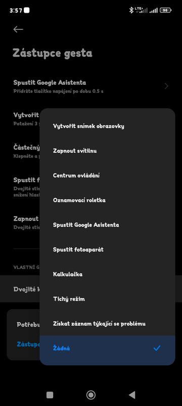 Nastavení > Další nastavení > Zástupce gesta > úplně dole kliknout na modré „Zástupci tlačítek“ > a všude tu po rozkliknutí jednotlivých položek (krom poslední položky „Tlačítko Menu“) je nastavitelná volba „Zapnout svítilnu“.
